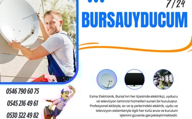 📡 Bursa Uyducu, Uydu Kurulumu, Çanak Anten Tamiri, TV Tamiri, Sinyal Ayarı, LNB Değişimi, Duvar Tipi TV Montajı, Merkezi Uydu Sistemleri, Yerinde Servis.